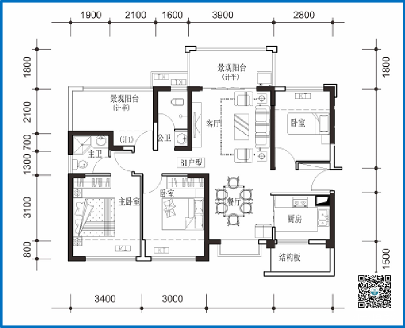 赠送率高,有部分产品赠送率超过25%,在中心区一套常规三房两厅两卫,100㎡左右,7000元/㎡的单价,总价要70来万,在未来城同样的总价可以买一个100㎡的四房,房间客厅尺寸比常规三房还大。